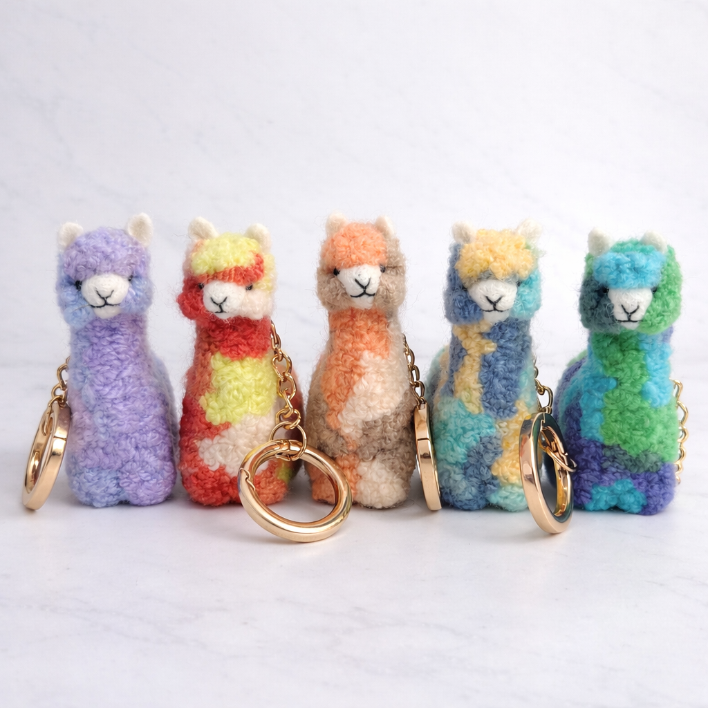 These vibrant rainbow alpacas are full of personality, each one handcrafted from soft alpaca wool in a playful mix of colors. No two are exactly the same—every piece has its own unique pattern, making your alpaca truly one of a kind.