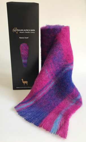 Brushed Baby Alpaca Scarf - Royal/Fushia Check